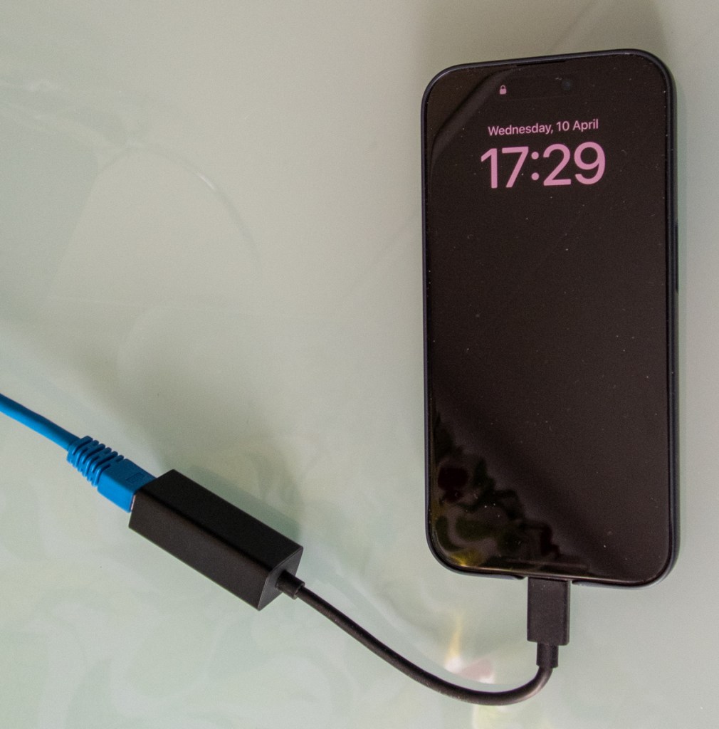 Et siste steg er å få koblet PC, telefoner og nettbrett til en RJ45-kabel da disse sjelden har en inngang for RJ45. Noen «proffe» PCer og Macer kan ha det, men som regel finner man bare USB-C innganger. Oppkobling til nettet løses enkelt med små «overganger». Det er korte ledninger med en RJ45 inngang i den ene enden og en USB-C plugg i den andre.