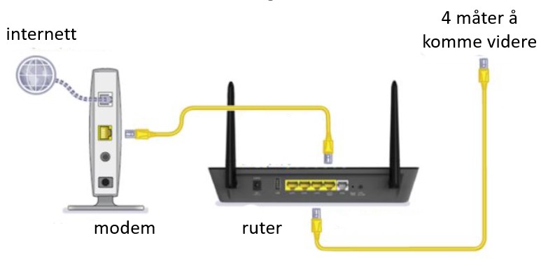 1. Bruke lange nettverksledninger RJ45 som går fra ruteren og til de stedene man vil ha nettilkobling.