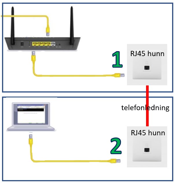 Bruk av telefonledningen kan være en god løsning hvis man f.eks. vil ha en overgang mellom to etasjer eller over en enkelt, lengre distanse inne i huset.