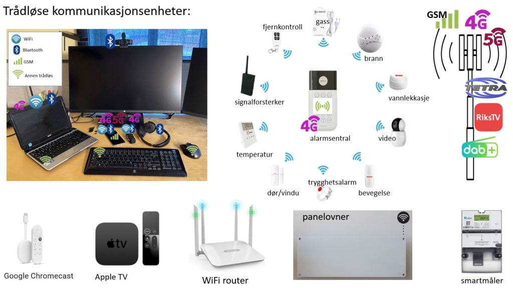 De fleste mennesker oppholder seg 24/7/365 i et miljø som i en «5G-verden» skal ha hundrevis av samtidige sendere, f.eks. i et «smarthjem», i et åpent kontorlandskap eller i en selvkjørende buss. En enkel opptelling viser at om hver person har en smartklokke med WiFi, 4G, Bluetooth, en PC med WiFi, Bluetooth, trådløs mus og tastatur, trådløse høretelefoner og kamera og en mobiltelefon med WiFi, GMS, 4G, 5G og Bluetooth, er man allerede oppe i 14 enheter per person.