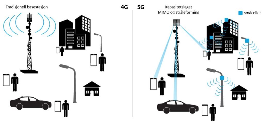 5G er ikke en teknologi, men en rekke ulike tekniske løsninger som til sammen kan realiserer de store visjonene for “alt på nett, alltid, med uendelig kapasitet”. 5G-teknologier er alt fra “nesten 4G” til ekstremt kraftige, målrettede stråler.
