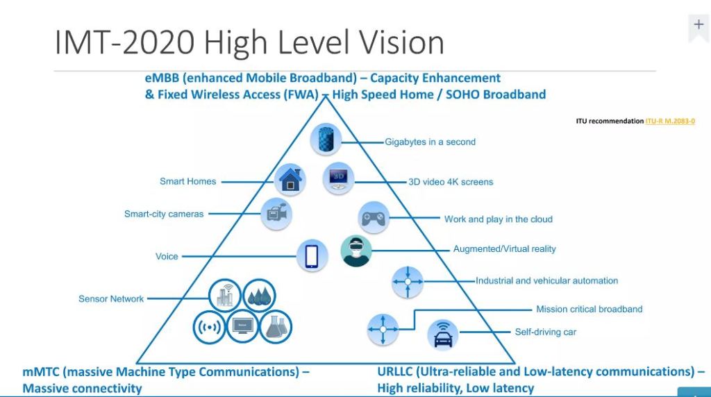 Visjonen telekomindustrien har for 5G vises i figuren under. Funksjoner det fokuseres på er: