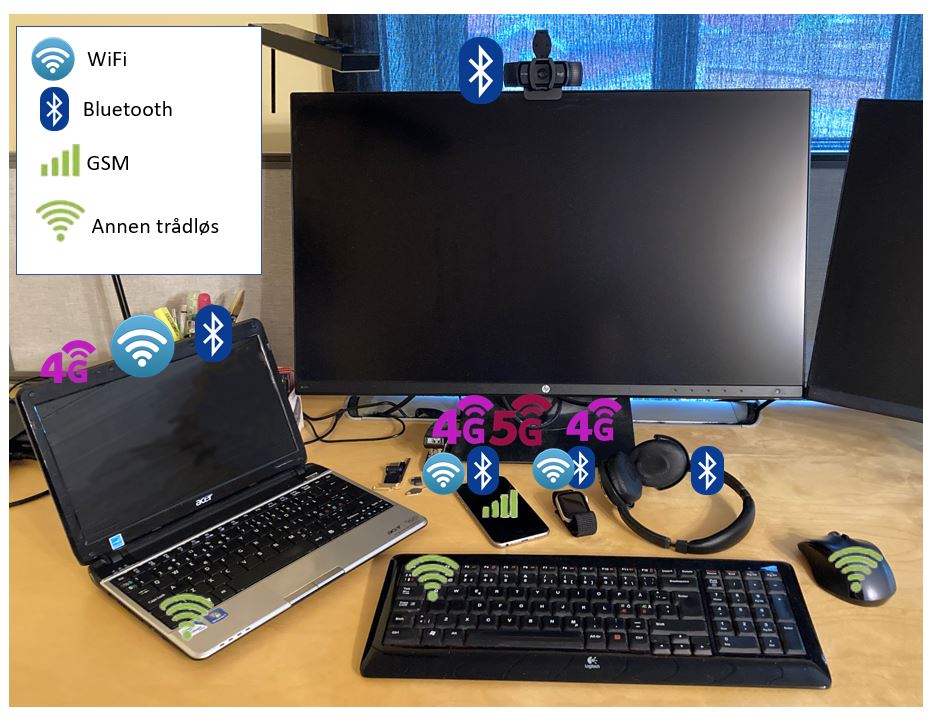EMF er alle steder vi bruker elektrisitet. Den type EMF som kommer fra trådløs kommunikasjon kalles radiobølger, eller radiofrekvent EMF, RF-EMF. Mengden RF-EMF har økt en milliard milliard ganger de siste 130 årene.
